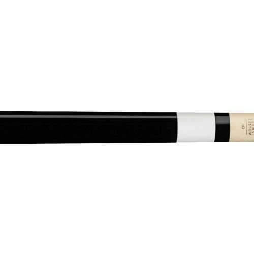 This modern classic Lucasi Custom cue features an antique-stained Super Birdseye Maple forearm and butt with six-point split black/imitation bone inlay points, split Rengas/imitation bone diamond inlays, black crowns, checked rings, black snake print embossed leather wrap, quick-release Uni-loc® joint, and Zero Flexpoint® Solid Core Low Deflection Technology Shaft.