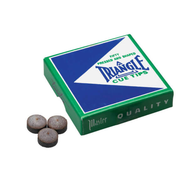 Triangle tips are a thick, firm tip crafted from special chrome tanned leather. You’ll notice very little mushrooming and excellent chalk retention with this product. Triangle tips have a coarse grain and are recognized as a hard cue tip. Triangle tips are made in the USA by Tweeten Fibre, the makers of Master Chalk.
