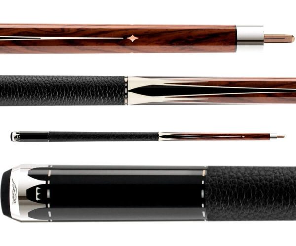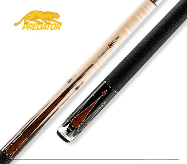 Predator Throne second generation #1 pool cue features a Cocobolo forearm with Midnight Maple point outlined in Micarta design. Along with the short warm Micarta points and rose gold alloy diamond inlays at the tip of each long point, Butt sleeve is Midnight black. Completing the cue is Rose-Gold Uni-Loc coated pin, Luxe wrap, custom dash ring work, signature Throne butt cap, and Uni-Loc weight cartridge system.